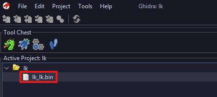 After importing the file, it will appear in your project view. Double click it to open it in the CodeBrowser.